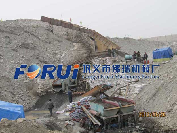 以下是佛瑞機械在新疆地區(qū)的砂金洗選現(xiàn)場圖片,該洗選廠采用溜篩篩分,固定溜槽粗選,跳汰機掃選,混汞筒精選的選金流程對新疆巴州的砂金礦進行洗選提取,獲得了良好的洗選效果,處理量和回收率都達到客戶滿意,該客戶每天回收純金近1000g。