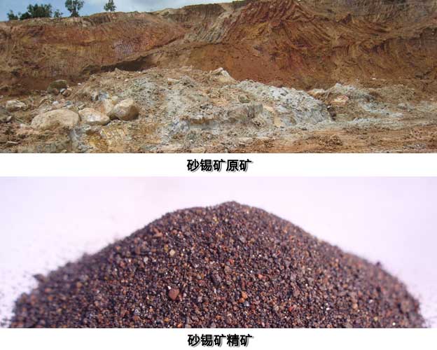 我們首先來一起看一組照片,該照片分為上下兩部分,上部為砂錫礦原礦的大致圖片,下圖為經(jīng)過跳汰機選礦提純后的錫精礦圖片。